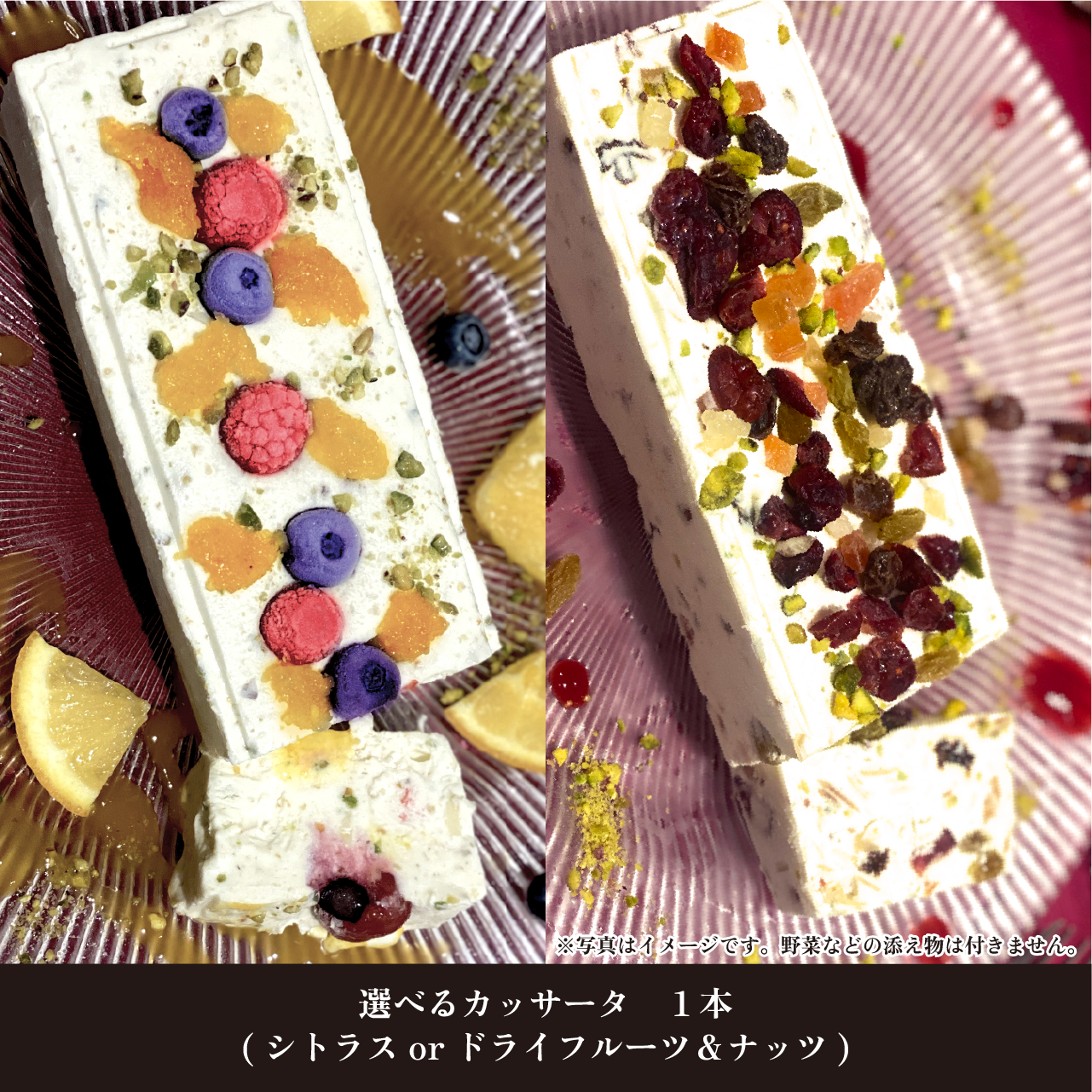 シェフ特製・2種のお肉のローストとパティシエ特製・選べるカッサータを楽しめるセットです。