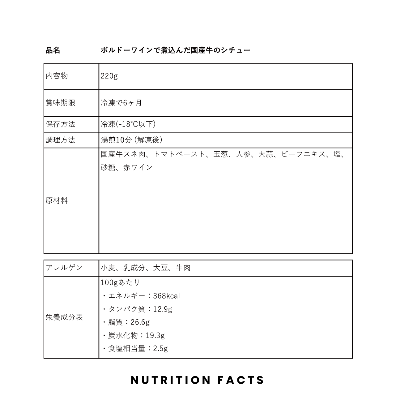 ・ボルドーワインで煮込んだ国産牛のシチュー 220g