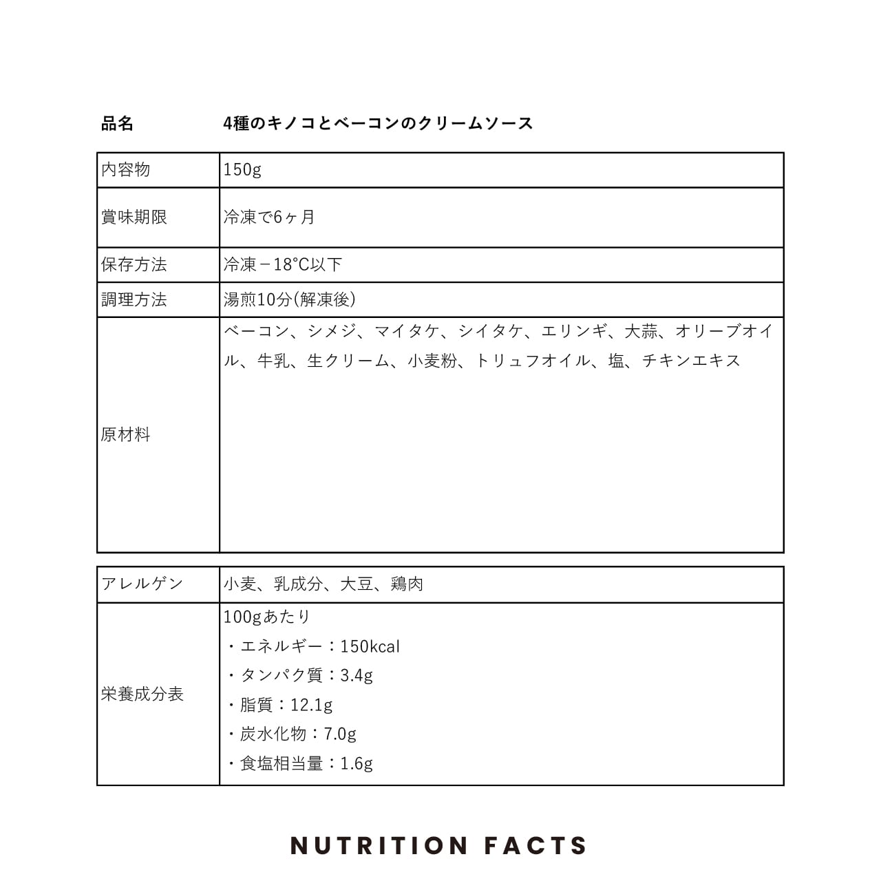 ∟4種のキノコとベーコンをクリームベースに仕上げたソース